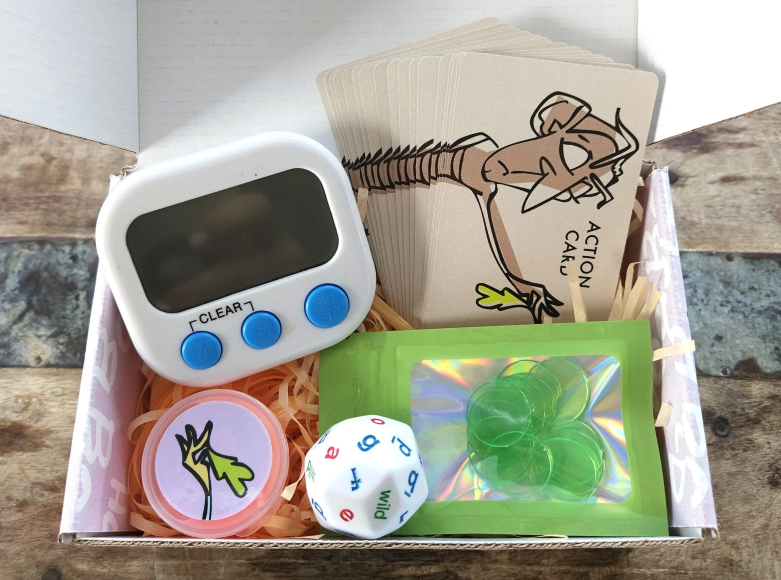 Roll the die, draw a card and boogie down! Fast-paced, funny and full of surprises, “Please Hold My Booger” encourages quick thinking, improv-style silliness and tons of laughs for families and kids of all ages!